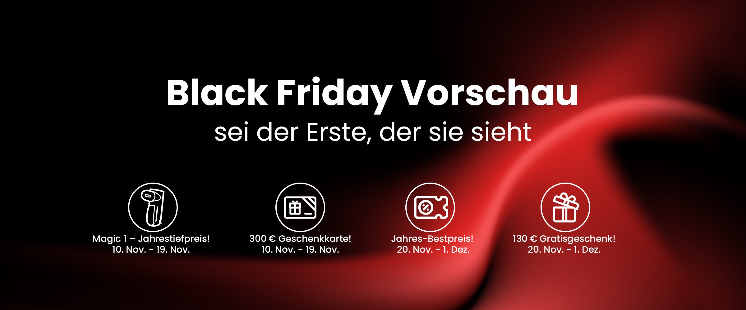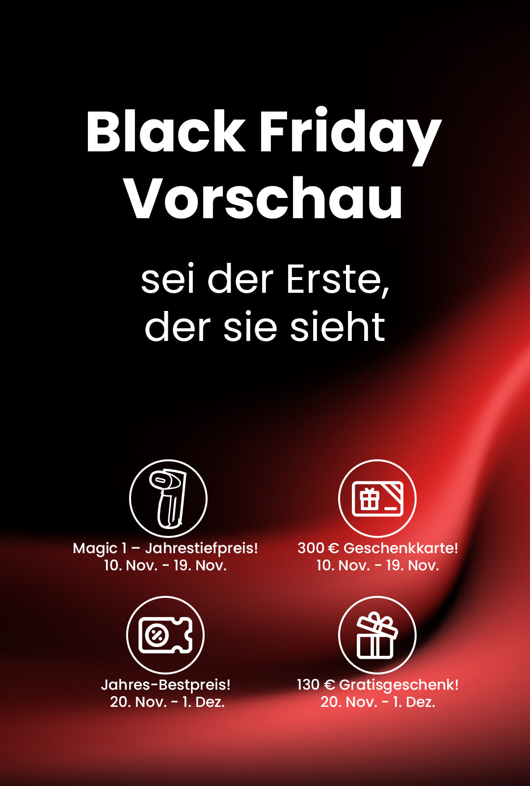 Die Aktion läuft vom 20. November bis zum 1. Dezember. Nur solange der Vorrat reicht. Vom 10. bis 19. November können Sie Ihre Produkte vorab in den Warenkorb legen. Die angezeigten Preise entsprechen noch nicht den Black-Friday-Preisen.