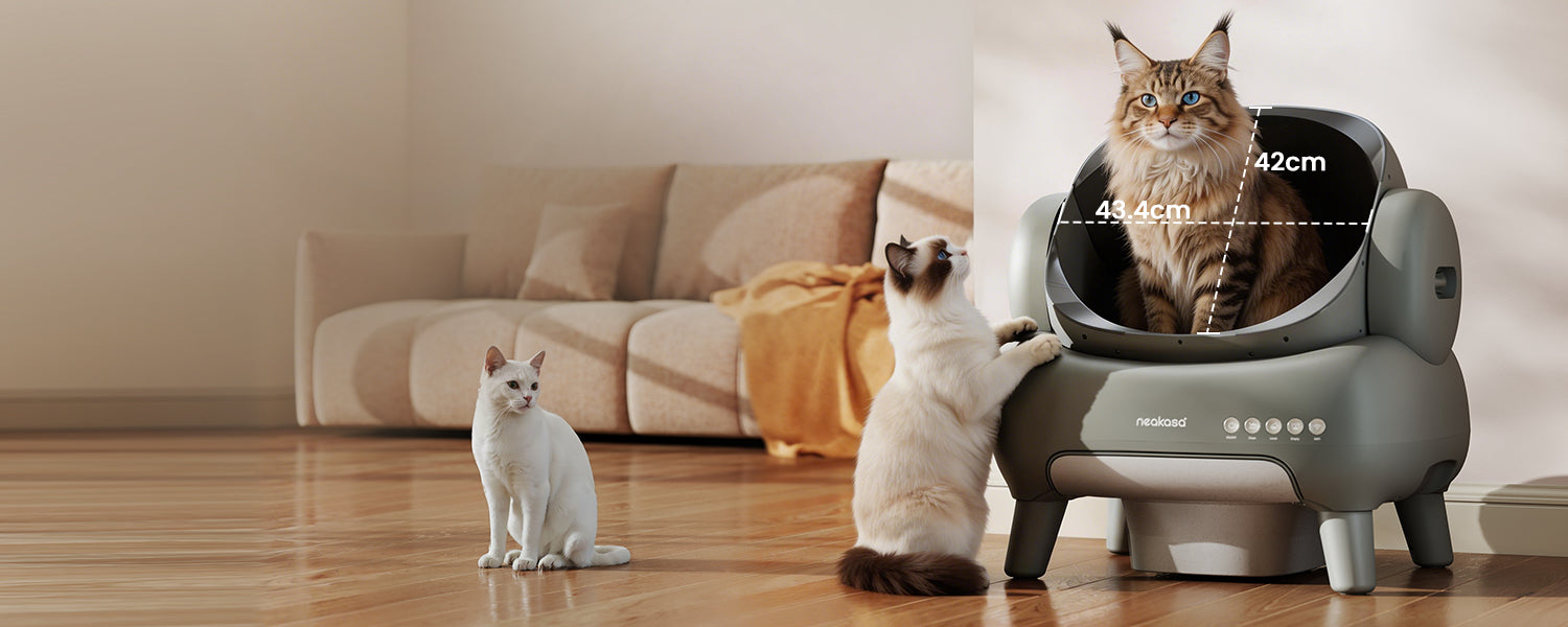 Dank ihres offenen und großzügigen Designs hat die Neakasa M1 Plus XXL selbstreinigendes Katzenklo praktisch keine feste Gewichtsbegrenzung. Für optimalen Komfort empfehlen wir sie jedoch für Katzen mit einem Gewicht von ca. 1–15 kg.