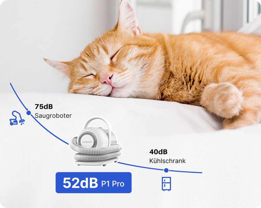 Mit dem Neakasa Professional Haustierpflege-Set wird die Fellpflege zur Wohlfühlzeit – flüsterleise mit nur 52 dB im Eco-Modus, damit sich Ihr Liebling rundum geborgen fühlt.