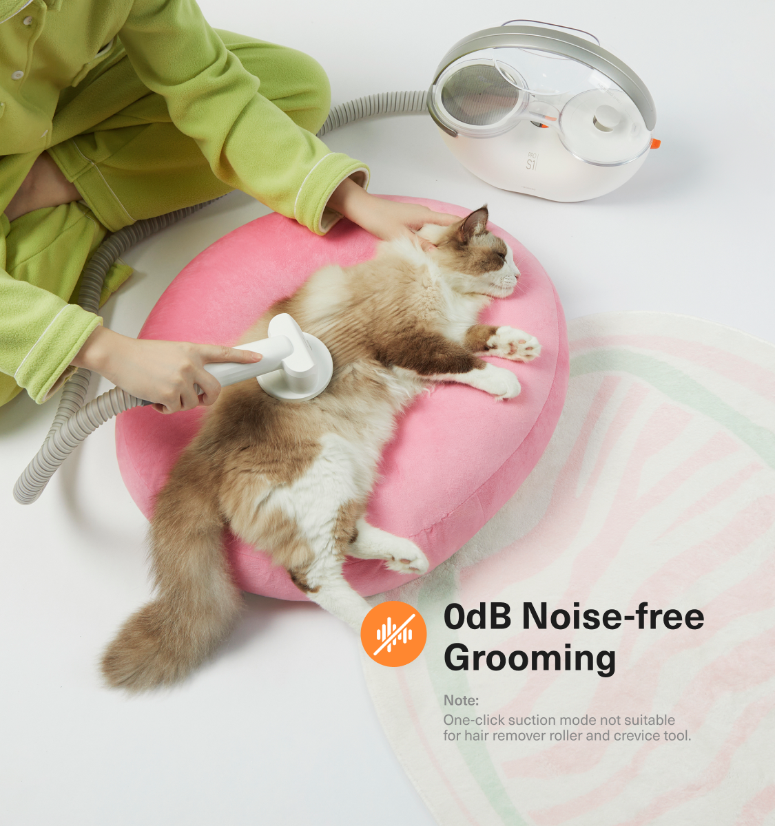 Beim Bürsten arbeitet das S1 Pro fast geräuschlos. Das Gerät wird nur beim Einschalten der Saugfunktion hörbar, sodass dein Liebling ganz entspannt und stressfrei gepflegt werden kann.