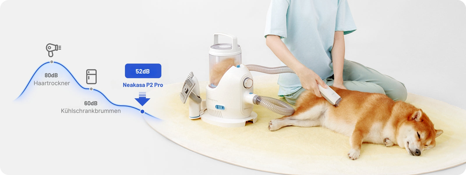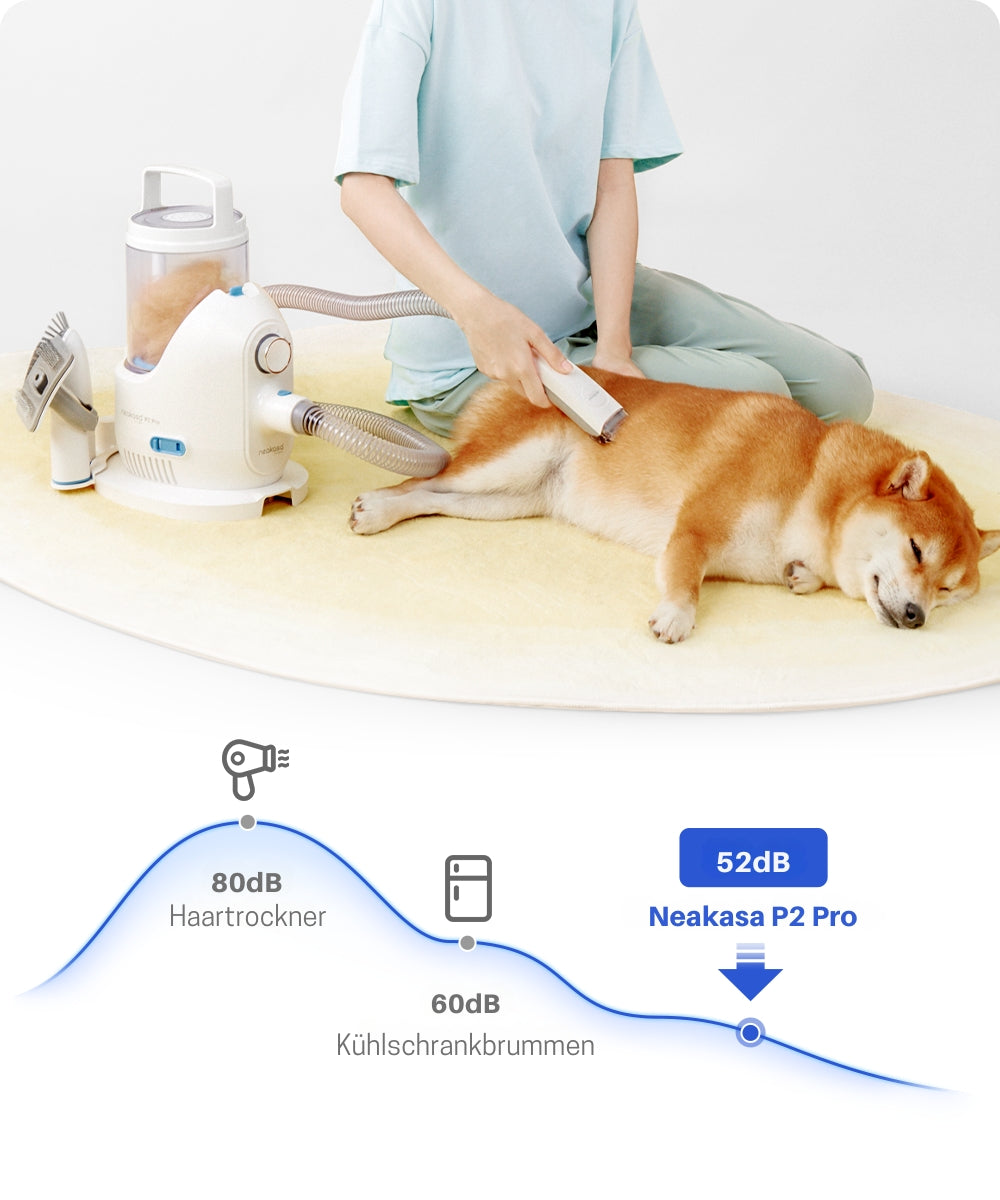 Das professionelle Neakasa Hundepflege-Set erreicht im Eco-Modus mit nur 52 dB den niedrigsten Geräuschpegel, damit sich dein Welpe entspannt. So wird die Pflege zuhause komfortabler als je zuvor.